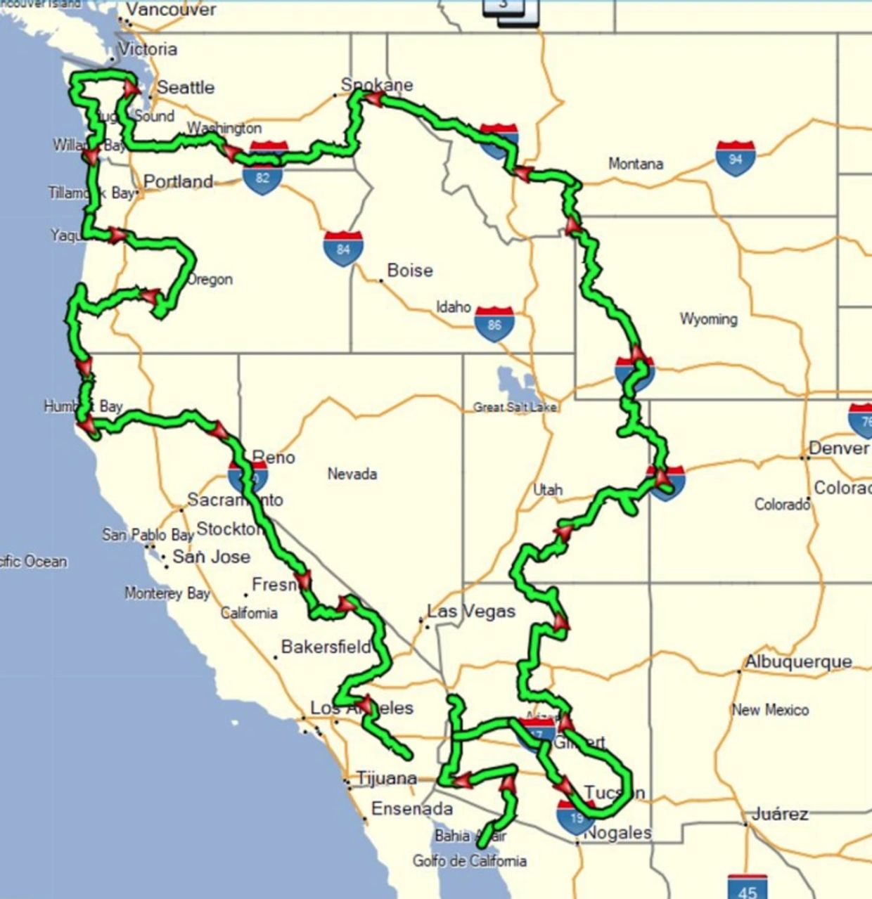 Sonora, Arizona, Utah, Colorado, Wyoming, Montana, Idaho, Washington, Oregon, California, & Nevada